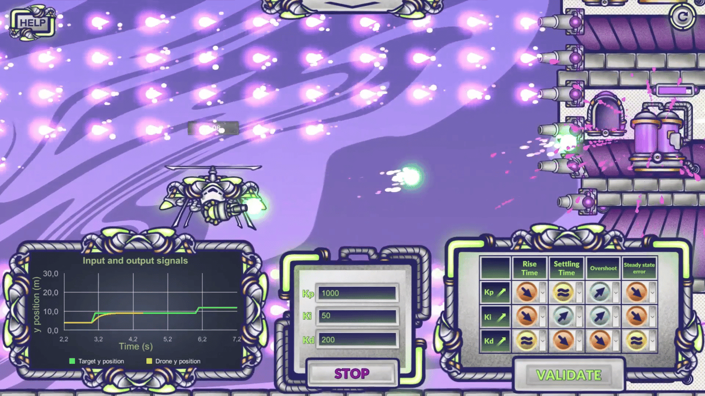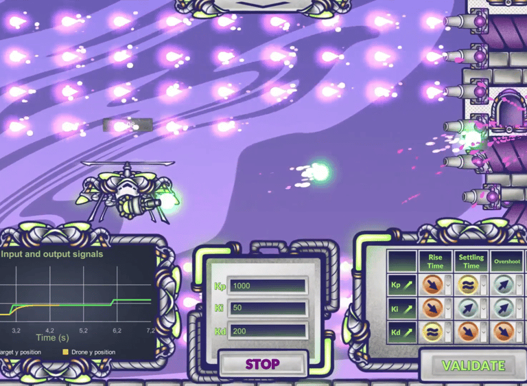 Un simulateur gamifié d’un contrôleur PID. Une approche pratique et ludique des systèmes de contrôle à travers la configuration d’un drone en environnement hostile.