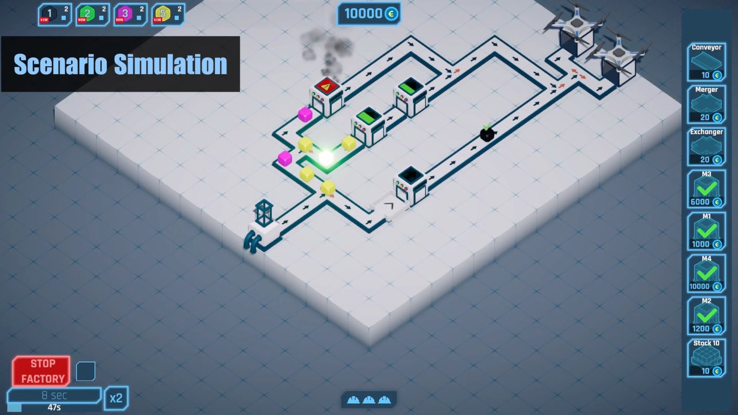 Un jeu immersif pour le management d’une chaîne de production. Doté d'un éditeur de scénario, il permet aux professeurs de challenger les étudiants dans des situations personnalisée.
