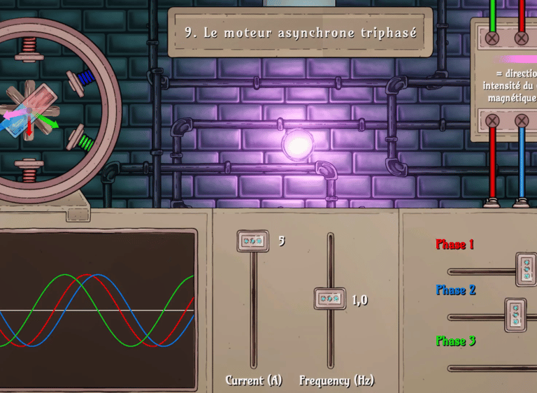 Un jeu sur l’électromagnétisme, expliquant le fonctionnement d’un moteur électrique. Une expérience guidée pour rendre l’apprentissage de l'électrotechnique plus accessible.